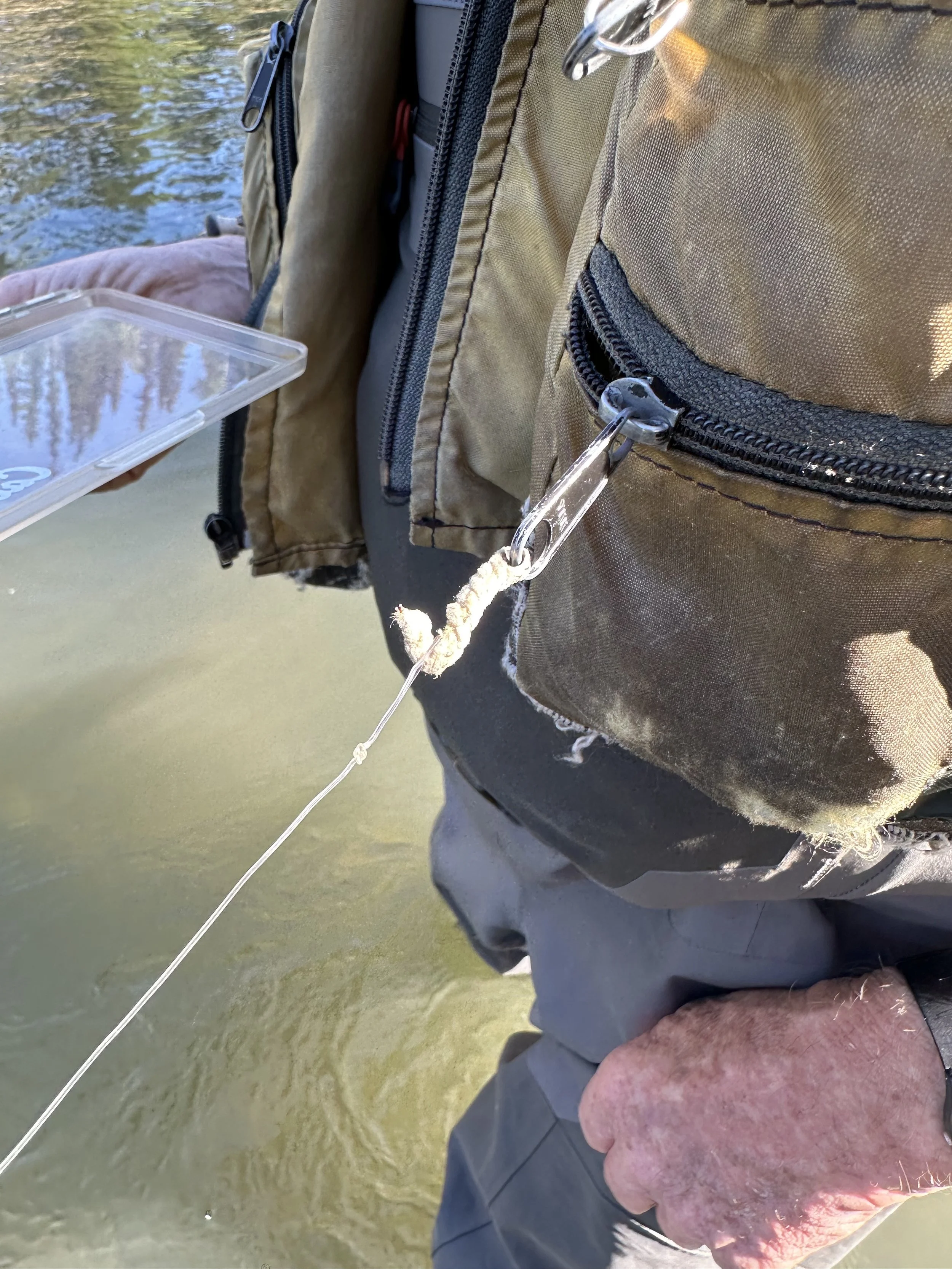 I can't remember what prompted the work on his rig, but Kieth had solved this EXACT same problem with a piece of pipecleaner (you know the ones that come with each skagit head or flyline) attached to a zipper on his weathered fishing vest. I watched him strip in his line for a change and attach the leader to the pipe cleaner. I smiled and applauded him for his practical solution to a common problem. I told him a similar story to what I’ve just told you about how I wanted to design something, but he has beat he to it. He smiled humbly and continued about his rig change.